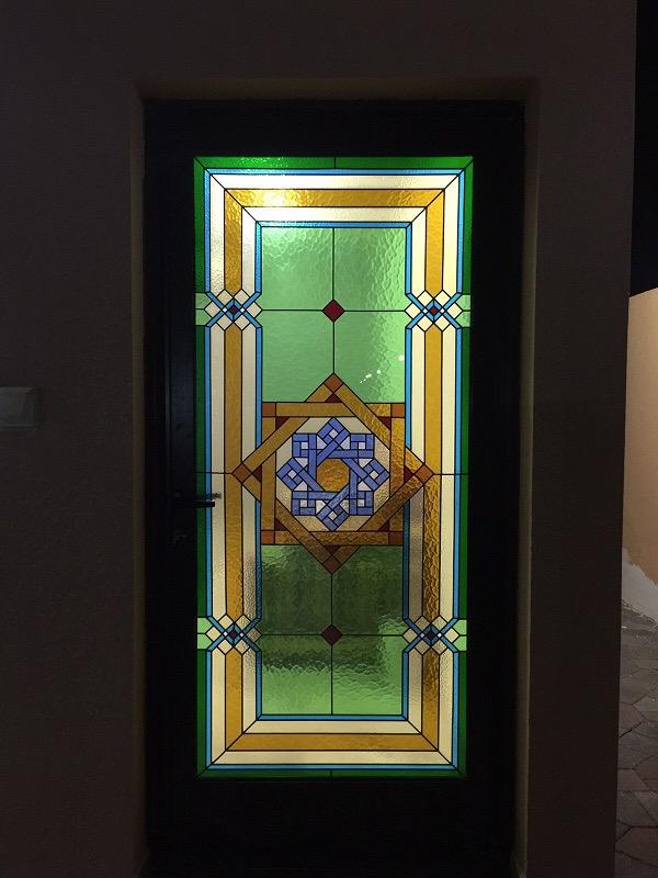 True stained glass uses colored glass pieces joined together, while painted glass involves applying permanent paints to clear glass. We offer both techniques and often combine them for stunning effects in projects across Dubai and Sharjah.
